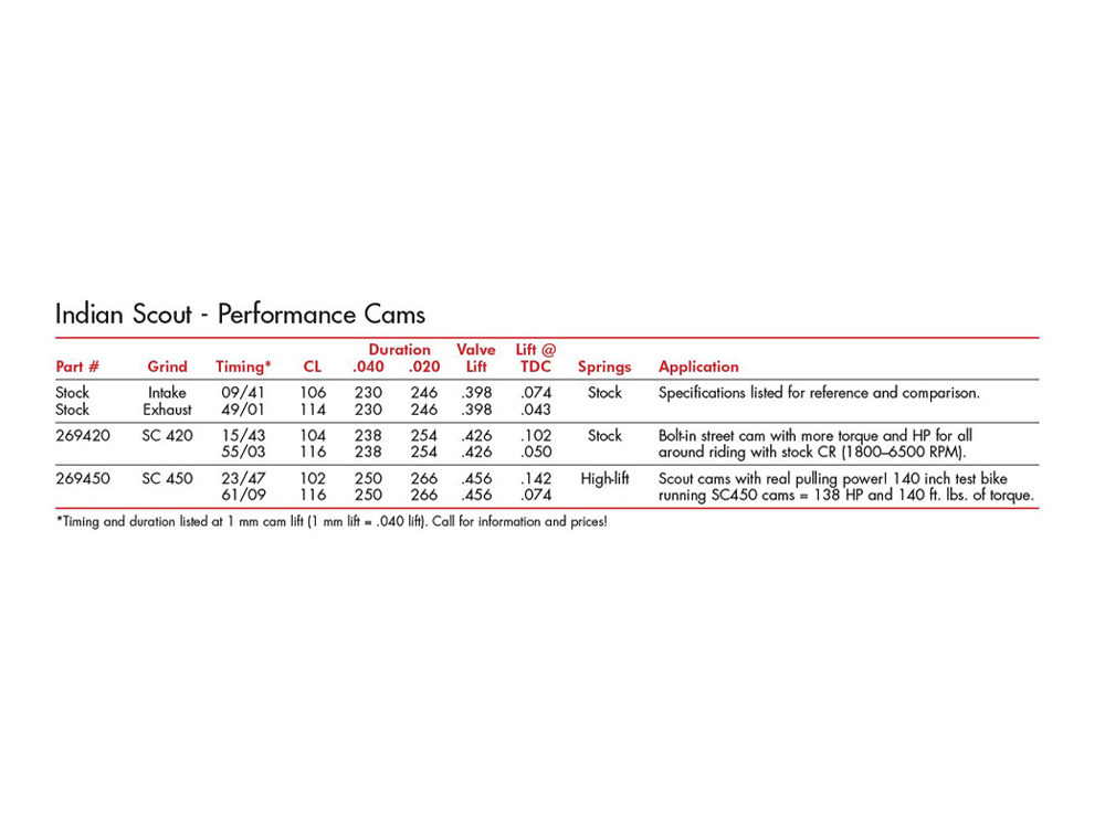 Bolt-in street cam with more torque and HP for all around riding with stock CR (18006500 RPM).