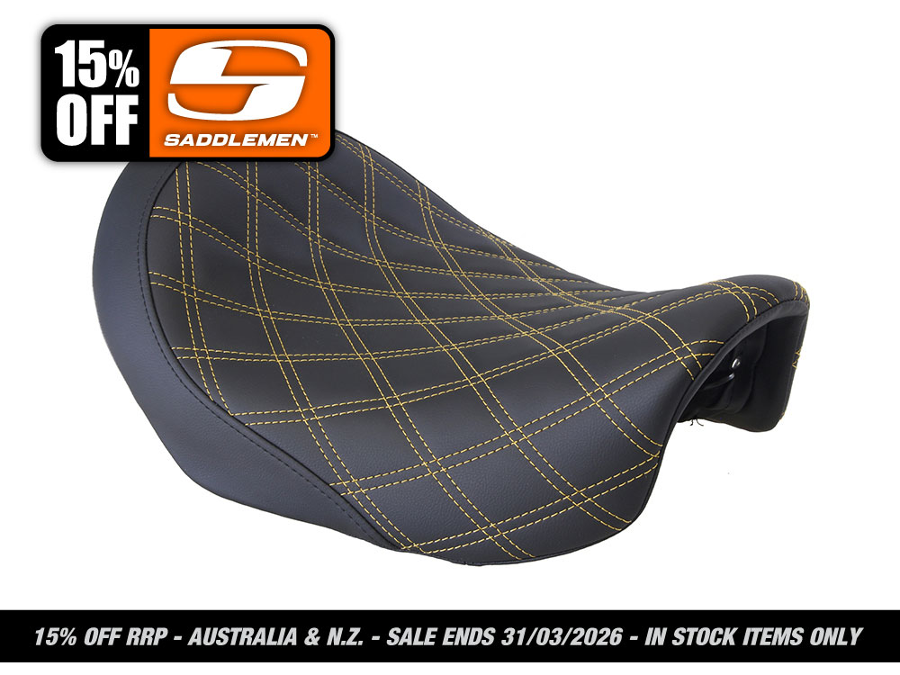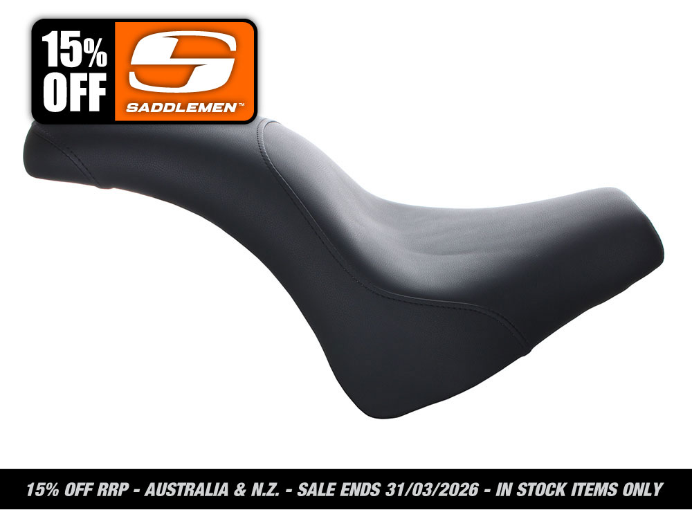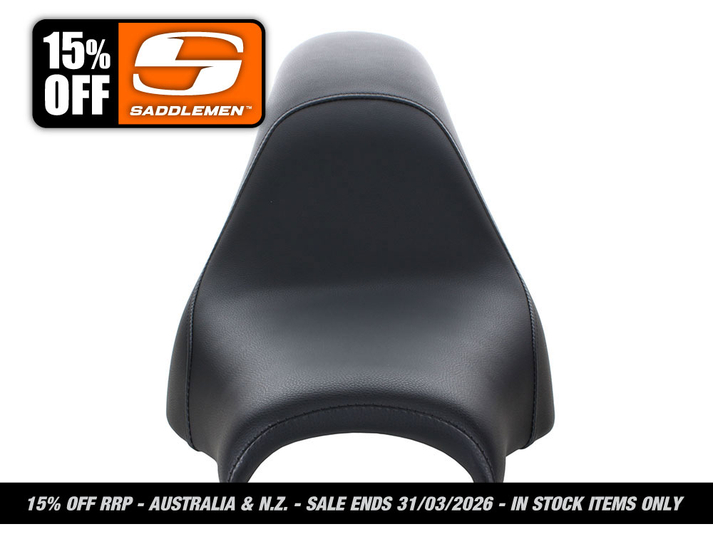 * Saddlemens classic slammed seat for two features narrow styling, a thin profile & low riding height.